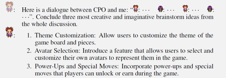 - 协同任务完成/创意生成:通过多智能体间的沟通,反思,校验,完成复杂任务,激发创意的小火花